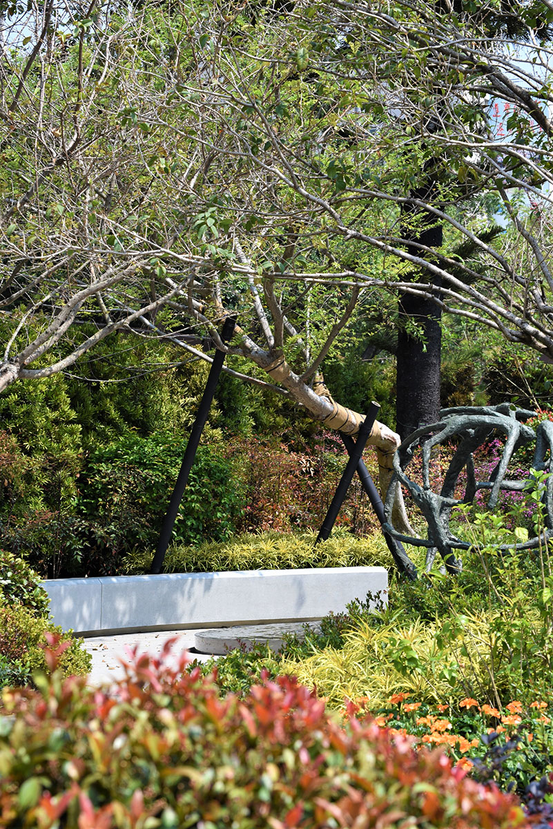 聯聚建設認養大同國小校園景觀,於校園前面一區域進行景觀更新,重新配置景觀水池、生態水池、大中小型喬灌木,塑造綠意景觀及森林意象,兼具美化及教育意涵。
