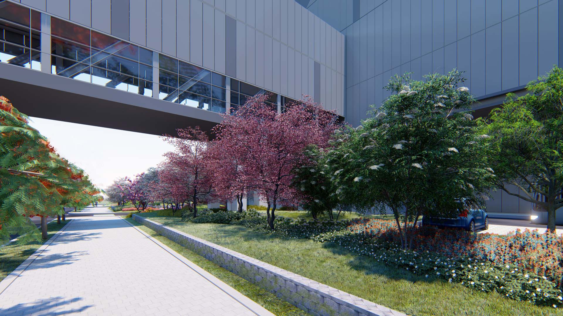 以竹南在地適應性良好的植種為基調,為此先進封測廠打造結合在地景觀特色、生態營造的綠色廠辦。