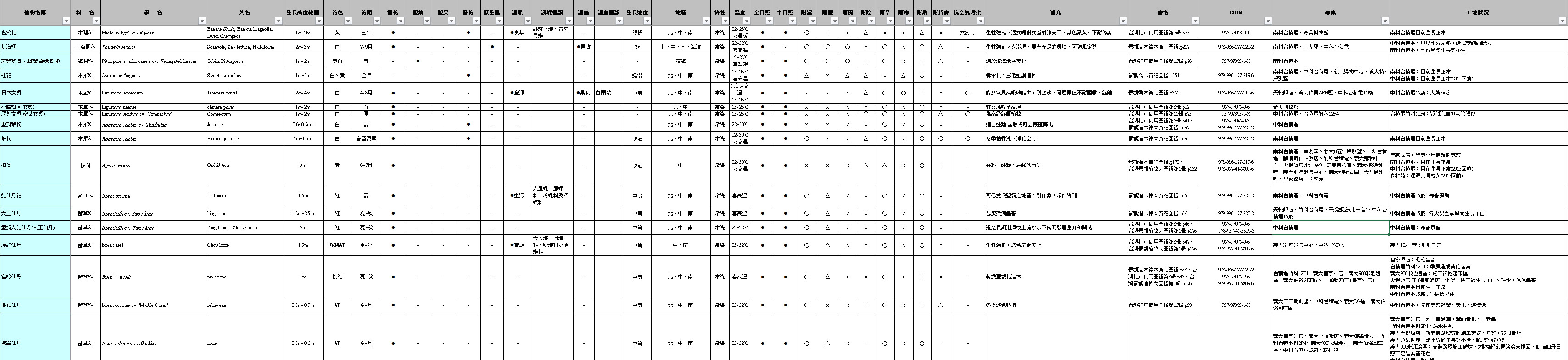 由上森公司工務及養護團隊依多年現場經驗整合而成的植栽觀察表單作為植栽選種依據。