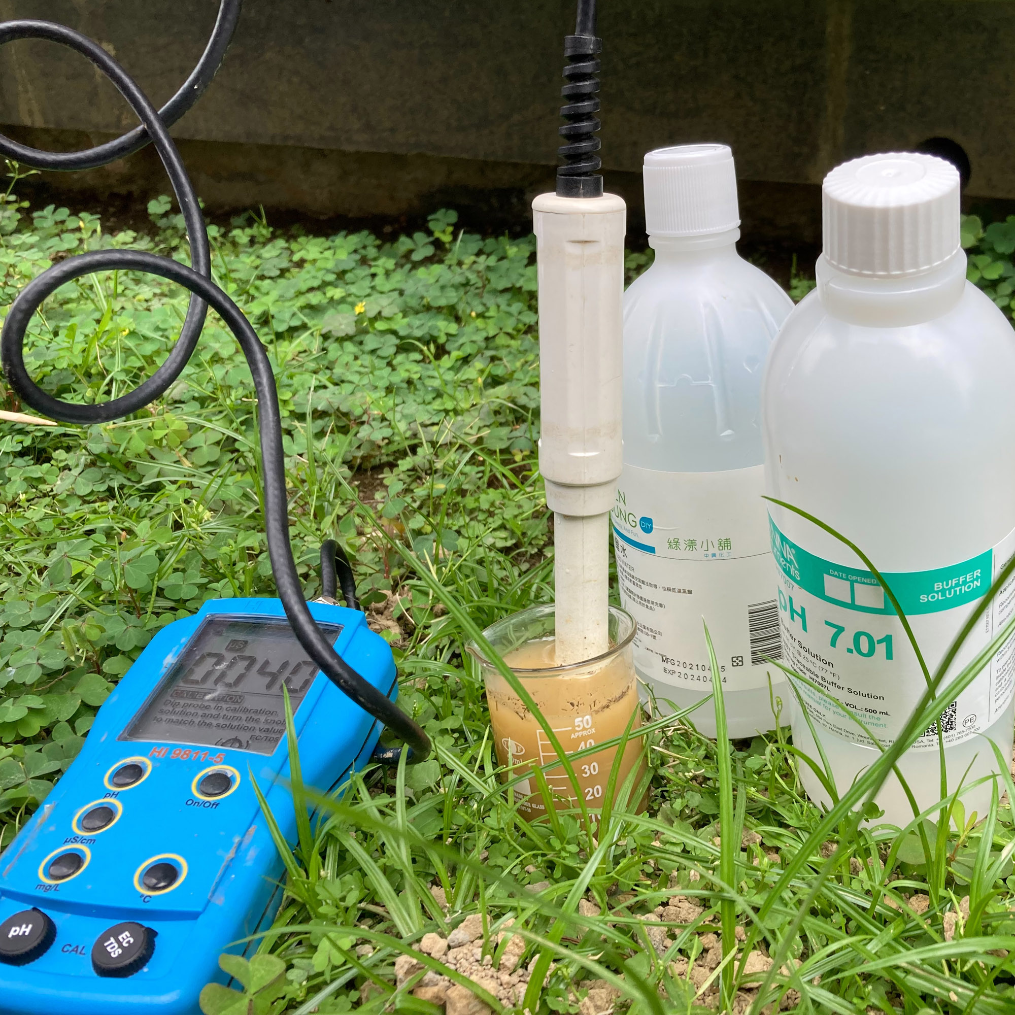 以pH/EC 測試儀檢土壤測酸鹼值與電導度