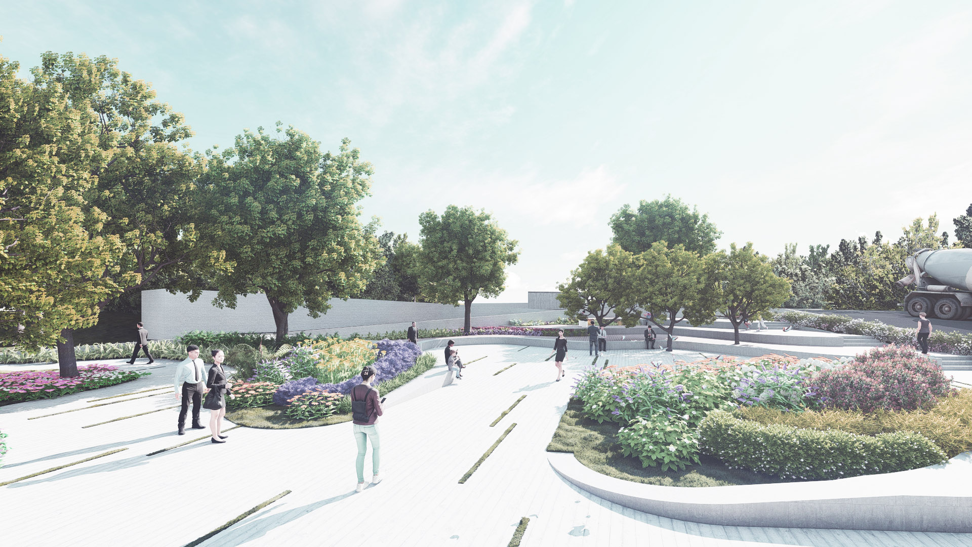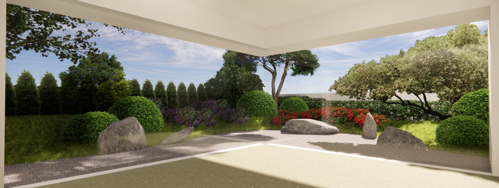 以適地適種為目標,運用3D軟體進行分析,以求在不同的環境特性中種植合適的植栽種,創造草木扶疏的動人景緻。