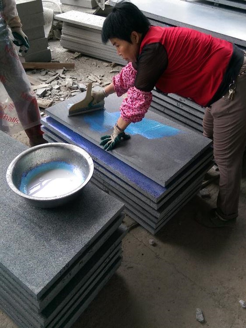 若需施作硅砂,以黏貼面為施作面,其餘五面以石材防護處理。
