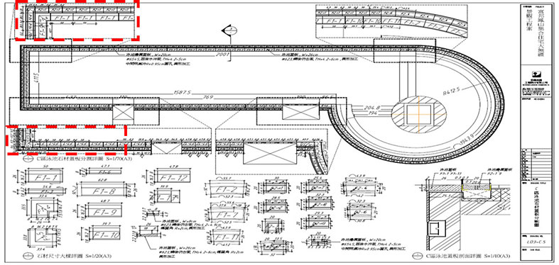 > 製作施工大樣圖,標明加工尺寸及分割詳細圖等,送請業主簽核。