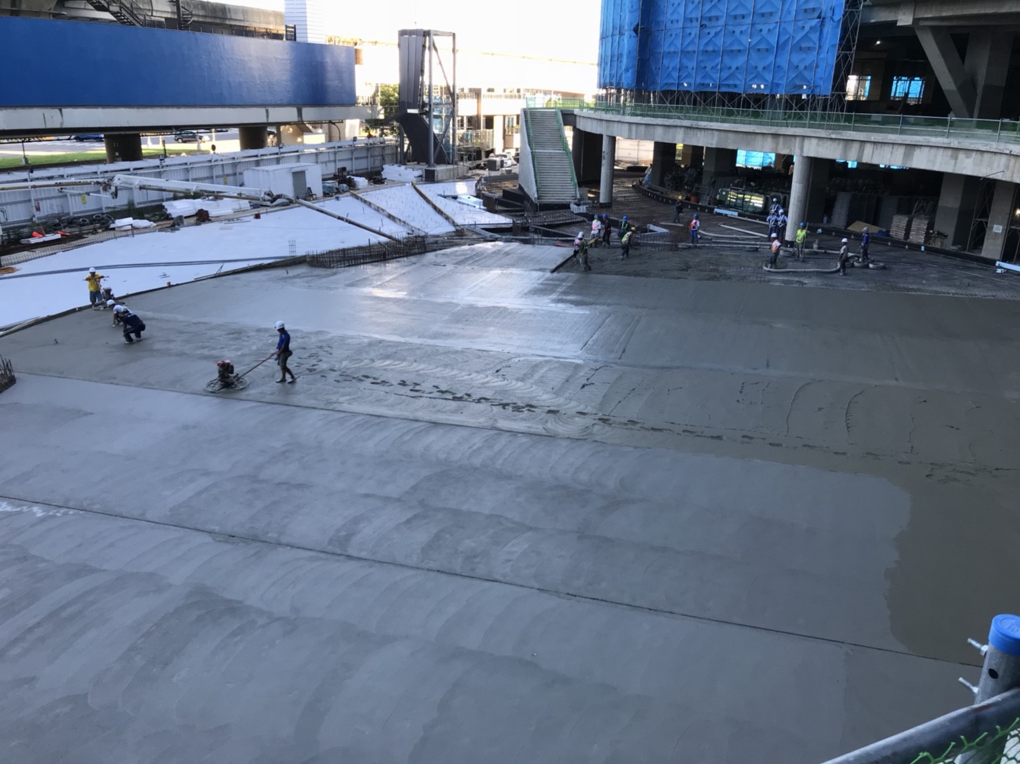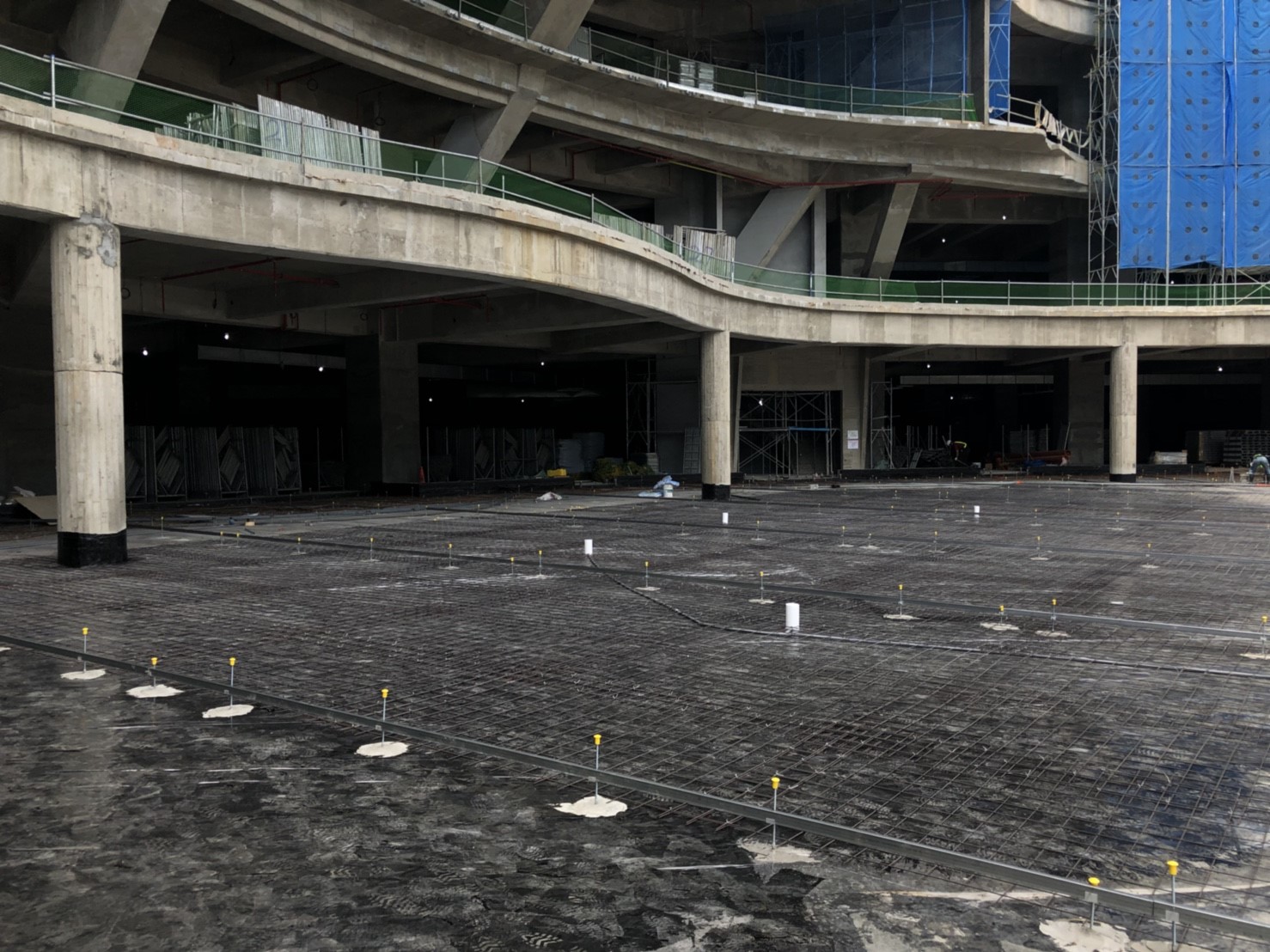大面積地坪灌漿面積每日可達2500m2左右(依專案現況屬性而定)。