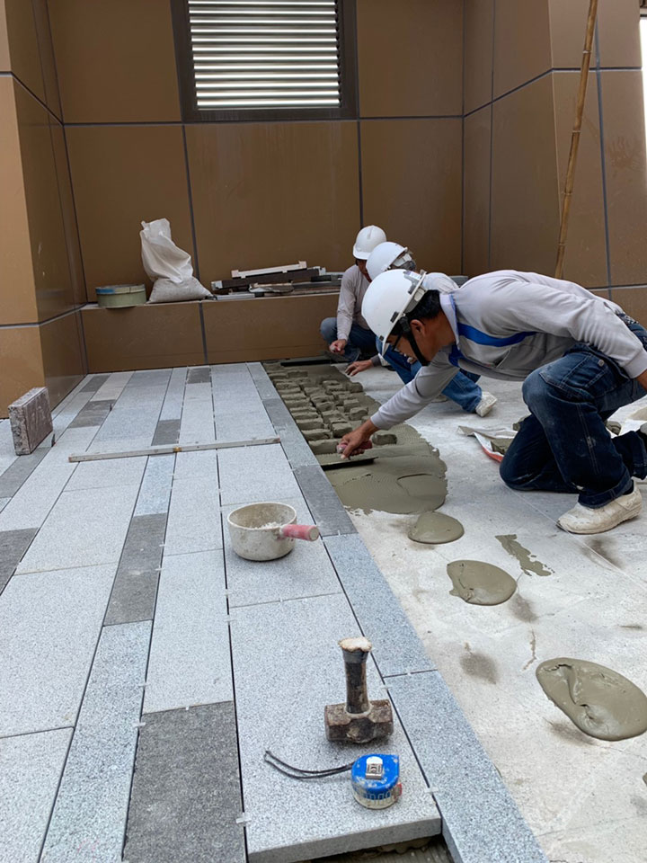 軌道灌漿因架設前已經充分考慮洩水與設計高程,灌漿後所呈現出來的平整度高、誤差值極低。更可以直接施做各式面飾材,減少水泥打底所產生的病變,提高鋪面強度。