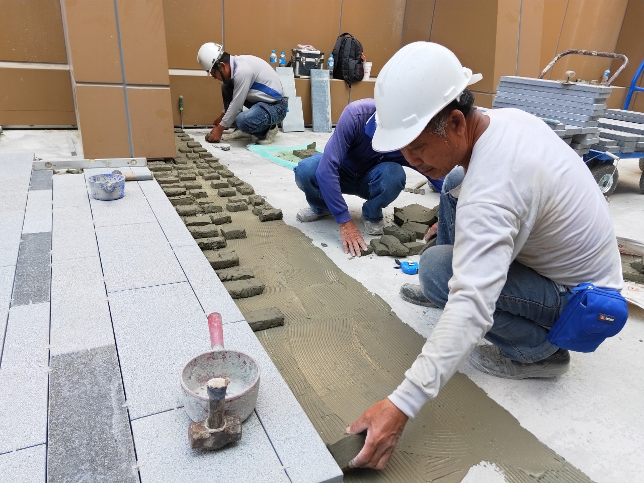 硬底工法配合磁磚整平器,提高鋪面平整度