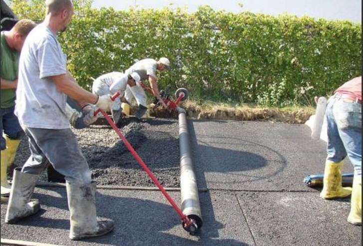 ❍ 與振動整平不同,滾輪式是將混凝土漿而不是水帶到表面