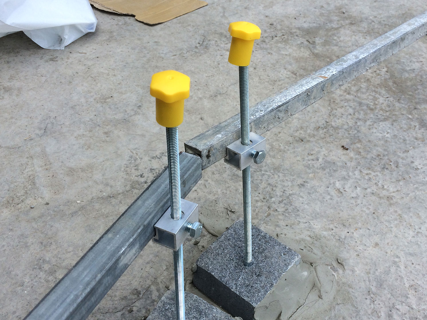 固定方式透過公司自行開模的夾具與配件進行鎖固,可配合現場各式的地坪條件。
