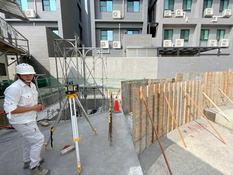 我們對於服務的業主,無論是設計上的回饋、土建結構的施作,一律使用全站式經緯儀來進行高精準度的收方與放樣工作。