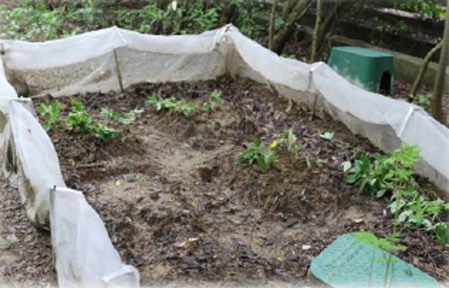 ❍ 周邊鋪設大量落葉、岸邊不除草,增加化蛹後上岸機會。