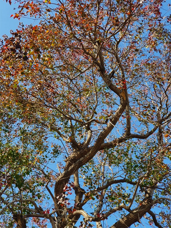 它的質性,略粗放、半文雅,帶有飄逸的韻味。它穿的是蓬鬆的大風衣,隆冬或春寒料峭時卻脫光光。在景觀植栽方面,如果環境偏陰濕,則葉變色的程度低,也較晚落葉。設計植栽時,適合陽光直射、排水良好、上坡段或假山造景的乾旱地。