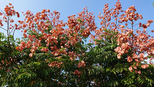 美在鮮黃花到紅、褐果滿樹冠,綿延、連續長達4、5個月。然而,這是人為栽植的好環境條件下,才有如此盛景,在它原生的環境,花果往往無法如此頂盛。由儉入奢易,由奢入儉難,台灣欒樹原生且特化於台灣低海拔山區溪谷或峽谷,通常是土壤化育不佳的岩壁隙,每年度有一旱季,而採取落葉的方式經過旱冬。